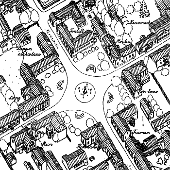 There are many kinds of activity in the buildings of the Pekkatori square at present: A-clinic, the workers’ institute, the barber-hairdresser’s department of the vocational school, and some dwellings among other things. Unfortunately, the other original use of the square, the trading, has slowed down almost entirely.
